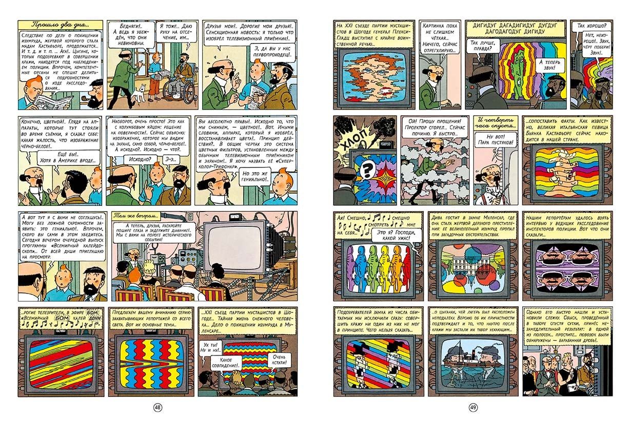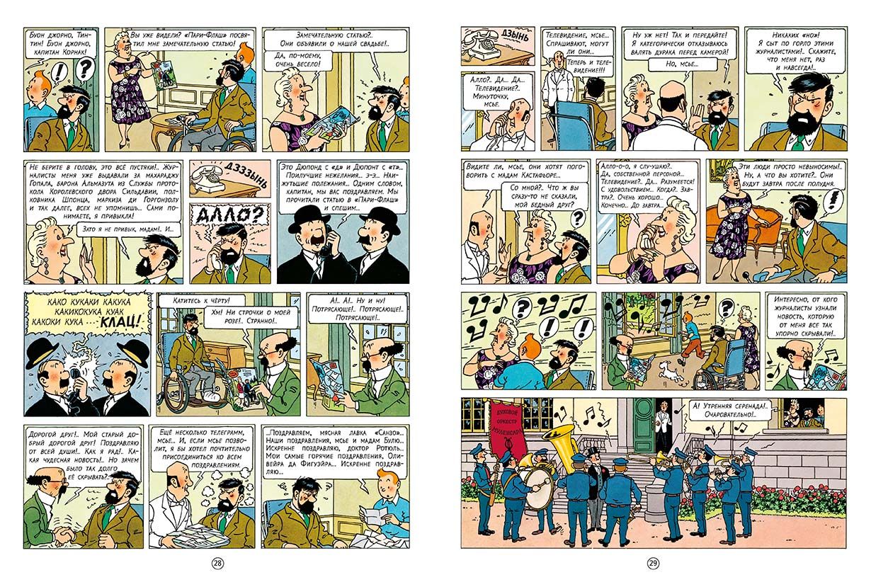 В один прекрасный весенний день Тинтин, который гостит у капитана Хаддока, получает письмо от Бьянки Кастафьоре. Оперная дива пишет, что устала от суеты и решила немого отдохнуть… И не где-нибудь, а в Муленсаре! Хаддок в ужасе: он готов бежать из собственного дома, лишь бы не встречаться с «этим ходячим циклоном». Но тут вмешивается его величество случай, и капитан оказывается на две недели прикованным к инвалидному креслу. Скрепя сердце он вынужден терпеть громогласную гостью, её свиту и вездесущих журналистов, которые шныряют по замку в поисках дешёвых сенсаций. И сенсации не заставляют себя долго ждать: сначала в прессе появляется материал о помолвке «миланского соловья» и «отставного адмирала Хаддока», а потом в доме происходит кража — пропадает бесценный изумруд, подаренный Кастафьоре махараджей Гопала…