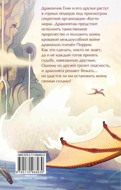 Дракончик Глин и его друзья растут в горных пещерах под присмотром секретной организации «Когти мира». Драконятам предстоит исполнить таинственное пророчество и положить конец кровавой междоусобной войне драконьих племён Пиррии. Как это сделать, никто не знает, да и не каждый готов принять судьбу, навязанную другими. Одному из друзей грозит опасность, и драконята решают бежать… но удастся ли им остановить войну своими силами?