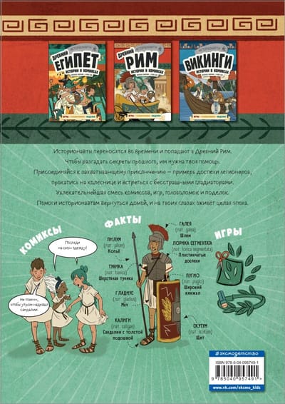 Отправляйся с юными исследователями в Древний Рим! Присоединяйся к захватывающему приключению — примерь доспехи легионеров, сделай подношение богам, прокатись на колеснице и встреться с бесстрашными гладиаторами. Эта книга - увлекательнейшая смесь комиксов, фактов и игр. «Историонавты» — это увлекательнейшая смесь комиксов, фактов и игр! Отправляйся с юными исследователями в Древний Рим! Присоединяйся к захватывающему приключению — примерь доспехи легионеров, сделай подношение богам, прокатись на колеснице и встреться с бесстрашными гладиаторами.