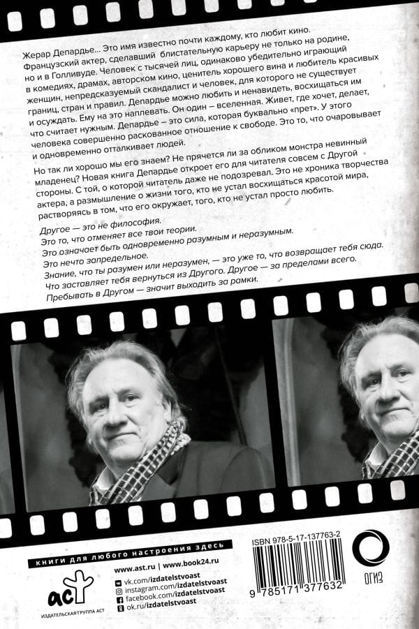 Жерар Депардье… Это имя известно почти каждому, кто любит кино. Французский актер, сделавший блистательную карьеру не только на родине, но и в Голливуде. Человек с тысячей лиц, одинаково убедительно играющий в комедиях, драмах, авторском кино, ценитель хорошего вина и любитель красивых женщин, непредсказуемый скандалист и человек, для которого не существует границ, стран и правил. Депардье можно любить и ненавидеть, восхищаться им и осуждать. Ему на это наплевать. Он один – вселенная. Живет где хочет, делает, что считает нужным. Депардье – это сила, которая буквально «прет». У этого человека совершенно раскованное отношение к свободе. Это то, что очаровывает и одновременно отталкивает людей. Но так ли хорошо мы его знаем? Не прячется ли за обликом монстра невинный младенец? Новая книга Депардье откроет его для читателя совсем с Другой стороны. С той, о которой читатель даже не подозревал. Это не хроника творчества актера, а размышление о жизни того, кто не устал восхищаться красотой мира, растворяясь в том, что его окружает, тот, кто не устал просто любить.