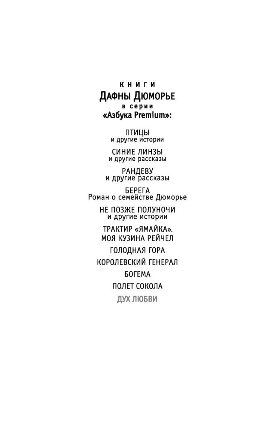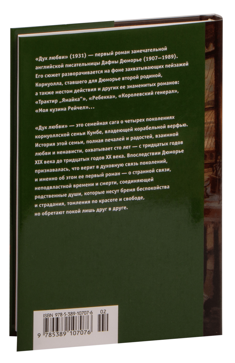 «Дух любви» (1931) — первый роман замечательной английской писательницы Дафны Дюморье (1907–1989). Его сюжет разворачивается на фоне захватывающих пейзажей Корнуолла, ставшего для Дюморье второй родиной, а также местом действия и других ее знаменитых романов: «Трактир «Ямайка», «Ребекка», «Королевский генерал», «Моя кузина Рейчел»... «Дух любви» — это семейная сага о четырех поколениях корнуоллской семьи Кумбе, владеющей корабельной верфью. История этой семьи, полная печалей и радостей, взаимной любви и ненависти, охватывает сто лет, с тридцатых годов XIX века до тридцатых годов XX века. Впоследствии Дюморье признавалась, что верит в духовную связь поколений, и именно об этом ее первый роман — о странной связи, неподвластной времени и смерти, соединяющей родственные души, которые несут бремя беспокойства и страдания, томления по красоте и свободе, но обретают покой лишь друг в друге.
