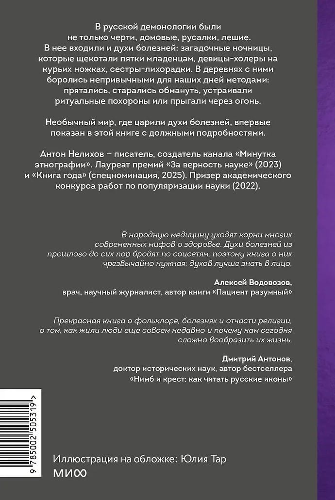 В книге фольклориста Антона Нелихова впервые, с привлечением большого числа архивных материалов и публикаций дореволюционных газет, подробно рассказывается о народной демонологии болезней: о демонах холеры и оспы, разных видах лихорадок, порче и сглазе. Вы прочтете о мистических "встречах" с болезнями и узнаете множество необычных — а иногда и опасных, — средств от них избавиться: от спуска «дурной крови», безумных снадобий, заговоров и песен-заклинаний до амулетов и хитрых способов обмануть болезнь.