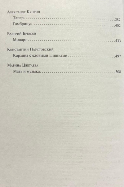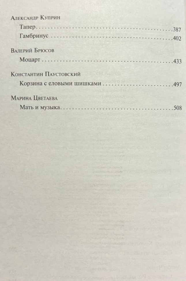 Тайна смерти Моцарта. Городок внутри музыкальной табакерки. История гениального скрипача, который страдает алкогольной зависимостью. Юмористическая зарисовка о дружбе контрабасиста и флейтиста. Жизнь слепого мальчика, обретающего свой мир через музыку. Это и многое другое ждет вас в сборнике «Душа музыканта», в который вошли рассказы о музыке от русских классиков: Загоскина, Пушкина, Одоевского, Тургенева, Толстого, Короленко, Чехова, Куприна, Брюсова, Паустовского, Цветаевой.