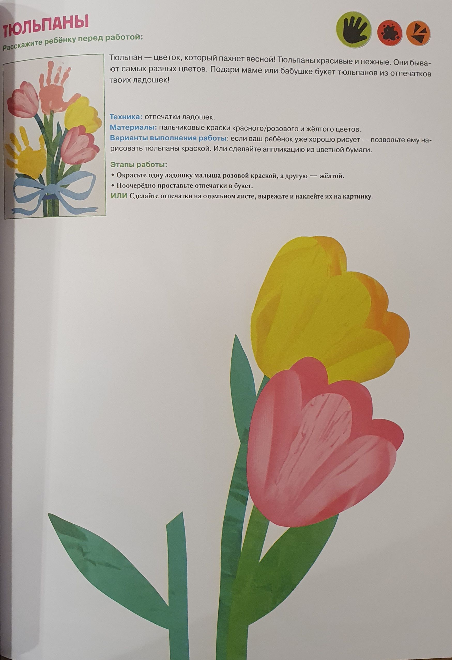 В альбоме 60 арт‑листов и 40 готовых занятий. К каждому занятию дан лист для мамы с инструкцией, картинкой для тренировки, советами по предварительной беседе с малышом, описанием материалов и техники выполнения работы. И лист для малыша с большой картинкой для творчества.