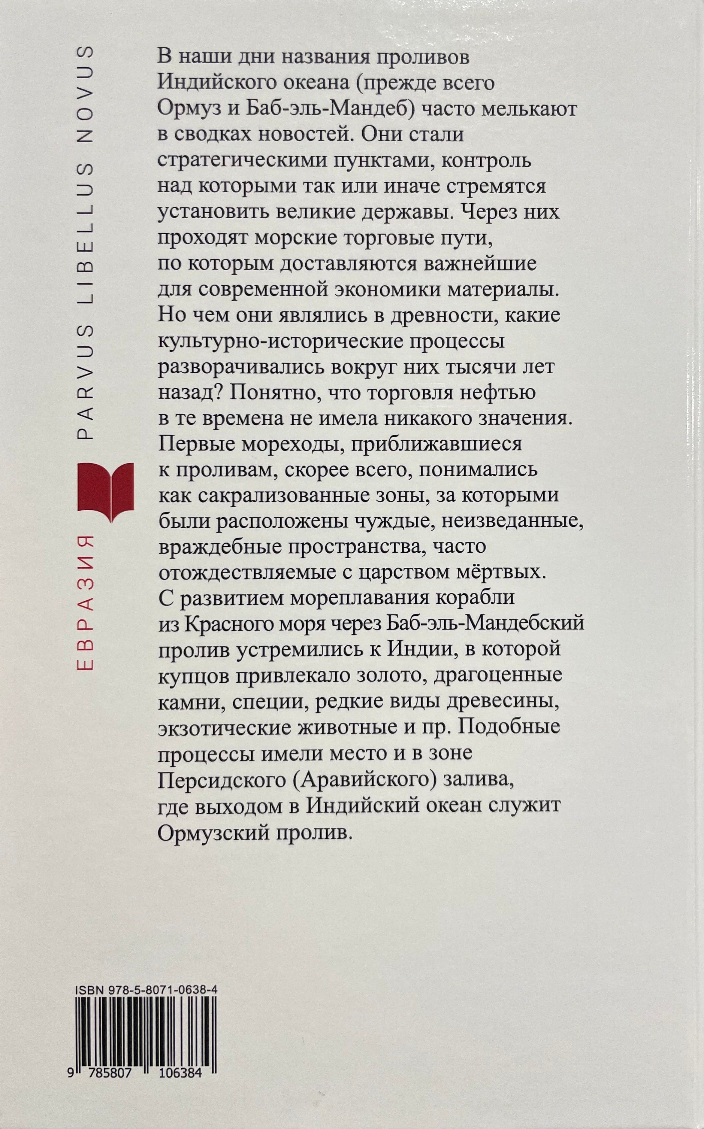 Проливы, примыкающие к Аравийскому полуострову с востока (Ормуз) и с Запада (Баб-эль-Мандеб), открывают выход к просторам Индийского океана. К ним мореходы устремлялись уже в глубокой древности. По Красному морю египетские корабли шли на юг, в волшебную страну Пунт. Через Ормуз проходил торговый путь, ведущий из Месопотамии в Индию. В монографии освещены вопросы развития морской торговли в регионе на протяжении многих веков, вплоть до раннего средневековья. Книга рассчитана на всех интересующихся древней историей человечества.