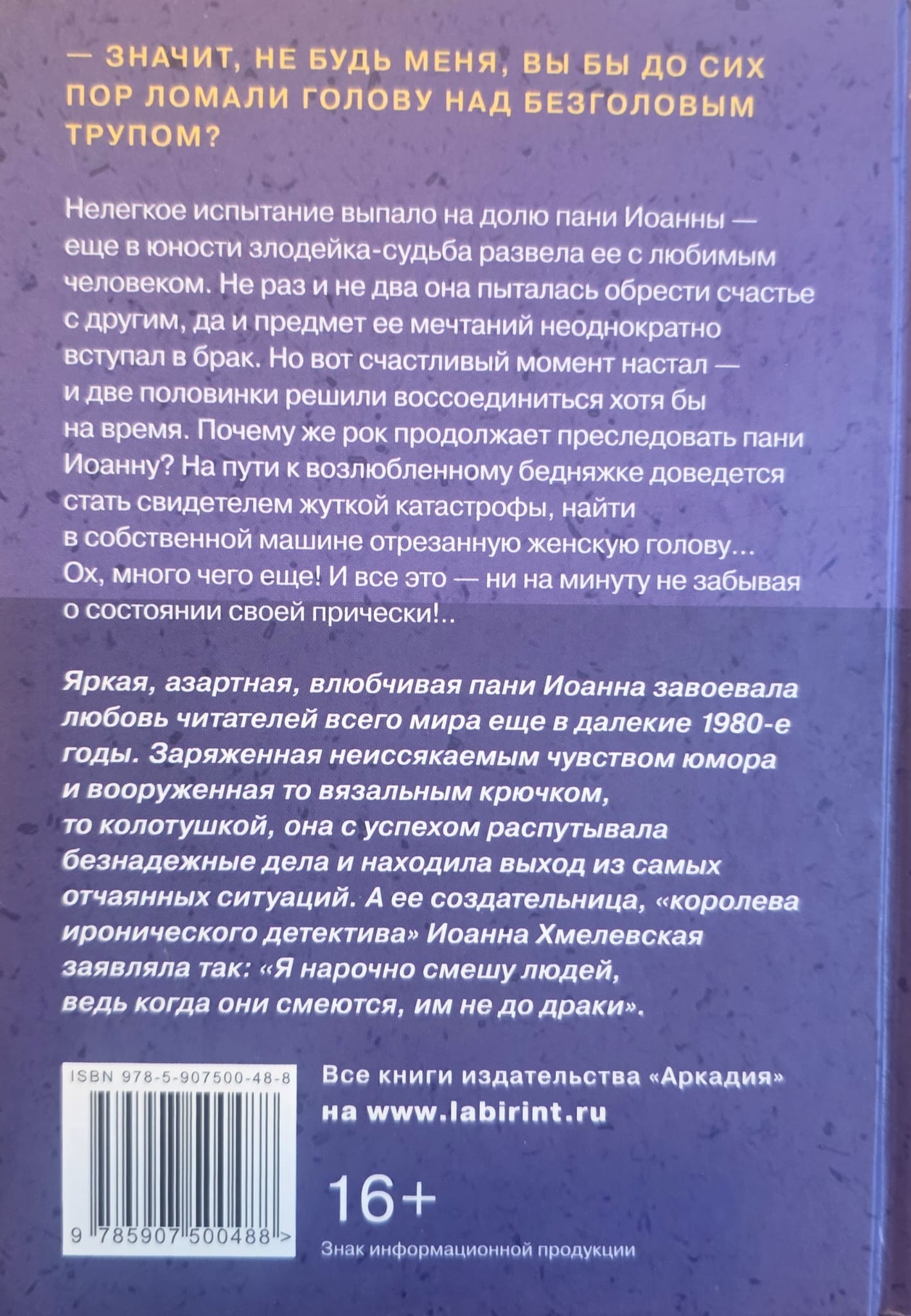 Настоящая любовь способна свернуть горы, но подобные подвиги от Иоанны не требуются. На пути из Варшавы в Париж, где обосновался ее любимый, прелестную пани беспокоит одно: как сохранить в порядке завивку, когда на улице моросит противный мелкий дождик? Придется доставать из багажника бигуди. Но кроме сумки в машине обнаруживается... Боже, что это?!.. Отрезанная голова какой-то женщины! Что теперь делать?! Но, как вы догадываетесь, пани Иоанна найдет наилучшее решение.