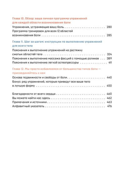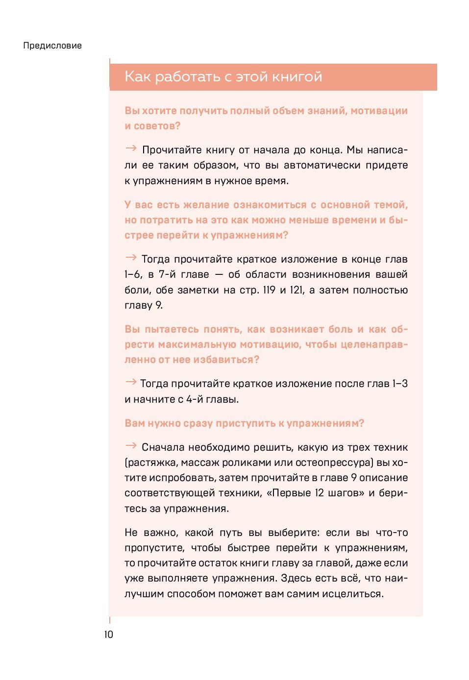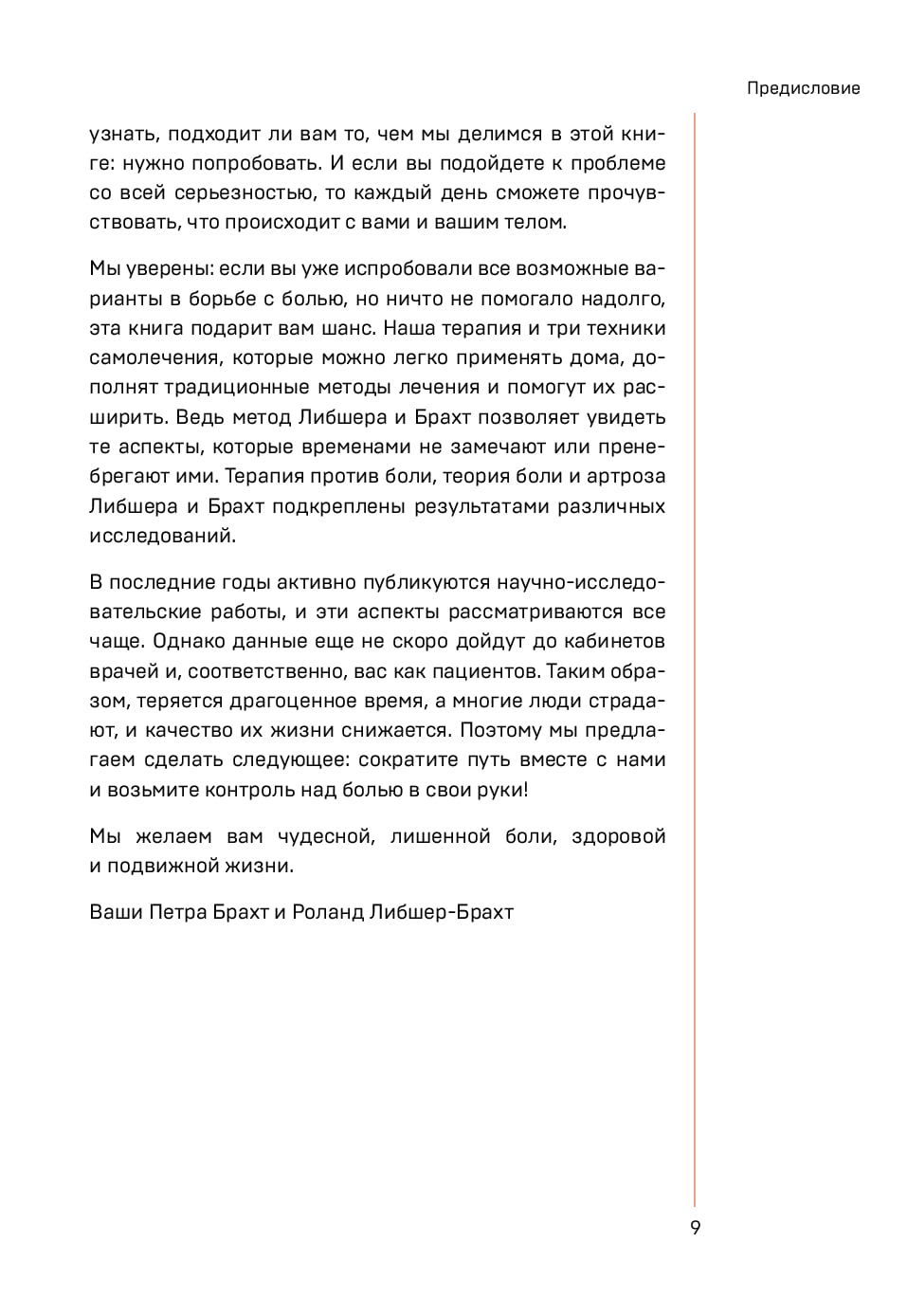 «Наша методика подходит для самолечения или прекрасно дополнит и расширит традиционную схему вашего лечения. Мы уверены, что с помощью упражнений из этой книги каждый сможет жить без боли, оставаться здоровыми и гибкими до самой старости. Вы еще будете с внуками в футбол играть — так мы всегда говорим нашим пациентам». — Р. Либшер-Брахт