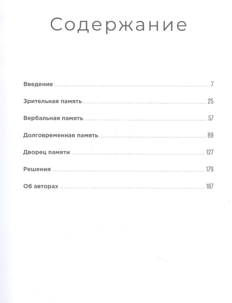 Цель собранных в ней техник и упражнений — помочь вам быстро запоминать любую информацию на короткое и длительное время. Головоломки будут постепенно усложняться, и к концу книги вы сможете построить собственный дворец памяти, чтобы вывести свою способность к запоминанию на новый уровень.