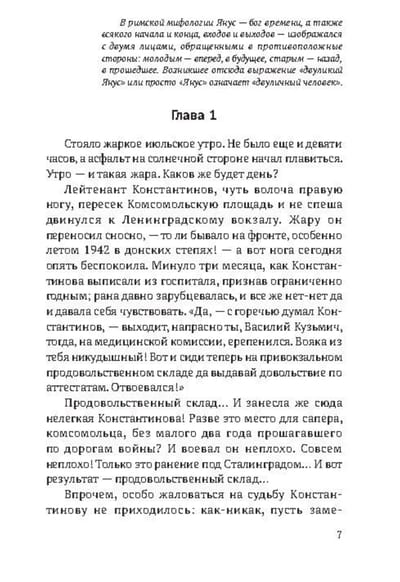 Лейтенант Константинов и сам не смог бы объяснить, что подозрительного было в двух офицерах, откомандированных с фронта в Москву в июле 1943 года, но... Роман о самоотверженной работе советских чекистов, в поисках крупного фашистского резидента умело расследующих сложное и запутанное дело. Первая книга из трилогии «Двуликий Янус» –классики советского шпионского детектива