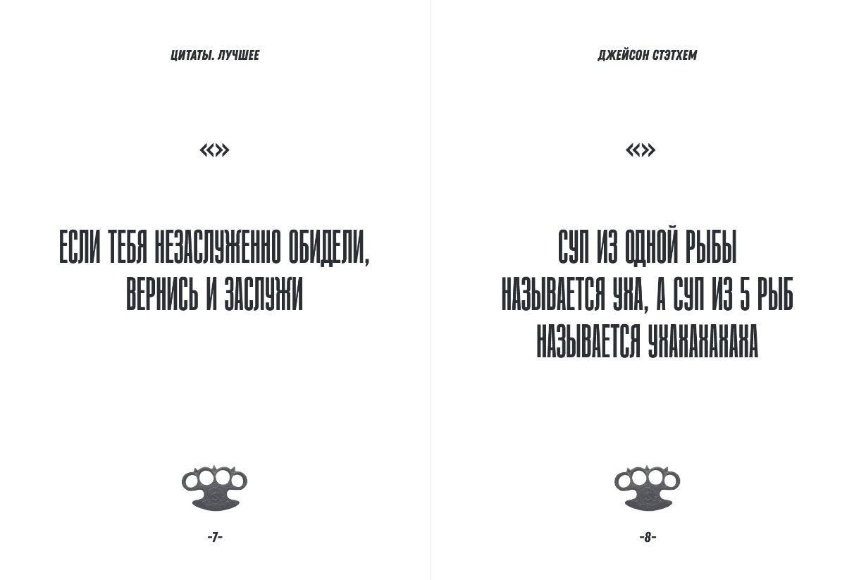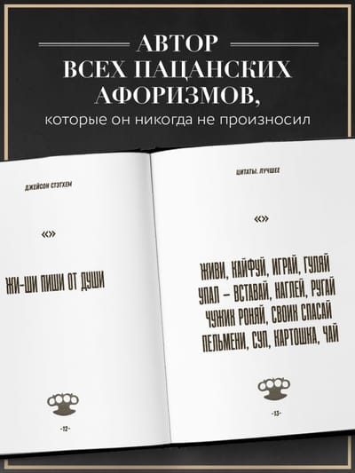 Перед вами сборник легендарных цитат от легендарного Джейсона Стэтхема — автора всех пацанских афоризмов, которые он никогда не произносил.