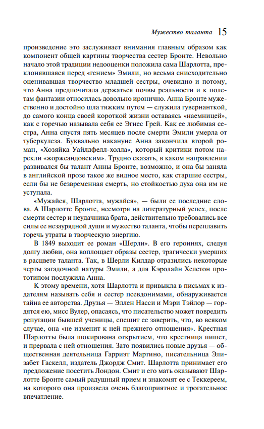Литературное наследие сестер Бронте вошло в сокровищницу национальной английской культуры, завоевав признание далеко за пределами Англии. Особый успех выпал на долю романа Шарлотты Бронте "Джейн Эйр". Написанный с искренностью и страстью, роман не стареет и не теряет своего обаяния. "Джейн Эйр" до сих пор остается одним из наиболее востребованных классических произведений XIX века и постоянно экранизируется. Сила его воздействия - в правде чувств, в их истинности, в соединении реального с романтическим, в покоряющей своей увлекательностью истории простой маленькой гувернантки, способной на большую и преданную любовь и сумевшей, несмотря на превратности судьбы, обрести счастье.