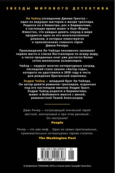 Джек Ричер, бывший военный полицейский, путешествует налегке и зачастую пешком. Он не ищет приключений, но... В общем, было бы удивительно, если бы он прошел мимо джипа, который врезался в одинокое дерево на пустынной дороге в штате Аризона. За рулем находилась женщина, однако при попытке помочь ей Ричер вдруг ощутил, как в него упирается ствол пистолета... Вот такое вышло знакомство. Женщина оказалась Микаэлой Фентон, сотрудницей ФБР, разыскивающей своего пропавшего брата-близнеца, который, похоже, связался с очень опасными людьми. Теперь, чтобы встретиться с лидером этой преступной группировки, Ричеру предстоит совершить невозможное, и это будет самой рискованной работой в его жизни. Неудача — не вариант, потому что в играх подобного рода проигравшему всегда лучше умереть.