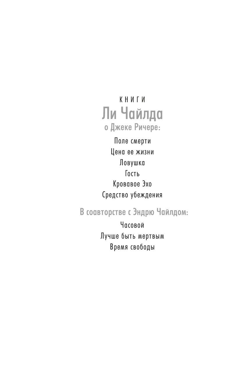 Тихий, скучный городок в штате Колорадо всколыхнула трагедия: погибла женщина. По словам одного уважаемого свидетеля, она сама бросилась под колеса. Однако случайно оказавшийся на месте происшествия бывший военный полицейский Джек Ричер собственными глазами видел, как прохожий, с безучастным видом остановившийся рядом, вдруг толкнул жертву под автобус, затем схватил ее сумку и исчез. Ричер не может допустить, чтобы преступнику, каким бы ни был его мотив, сошло это с рук, и решает докопаться до правды. Он узнает, что женщина была сотрудницей частной тюрьмы в Миссисипи и приехала в Колорадо, чтобы сообщить своему бывшему начальнику некие тревожные сведения. Однако не успела — тот скончался, предположительно от сердечного приступа. Две смерти, одна за другой. И это только часть заговора, в котором замешаны очень влиятельные люди, поэтому, когда неугомонный Ричер нарушает их планы, они собираются так или иначе устранить угрозу. Но кто из них мог предположить, что, если угроза исходит от Джека Ричера, план Б не сработает?..