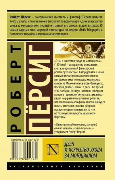 Первые страницы романа «Дзэн и искусство ухода за мотоциклом» Роберт Персиг отправлял ста двадцати двум издателям. Двадцать два из них выразили интерес. Прочитать законченную рукопись вызвались шестеро. Опубликовать ее захотел один. Но, разумеется, один — это как раз то, что было нужно. Так появился мировой бестселлер. Писатель задумал роман в 1968 году «как коротенькое и легонькое эссе», а в итоге получился добротный дневник путешественника. В книге повествование о событиях в дороге тесно переплетается с глубокими размышлениями о сути мироздания.