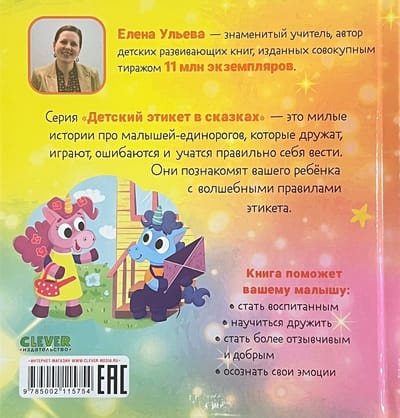 Книга из серии «Детский этикет в сказках» - это милая история про малышей-единорогов, которые дружат, играют, ошибаются и учатся правильно себя вести. Она познакомит вашего ребенка с волшебными правилами этикета. Книга поможет вашему малышу: - стать воспитанным; - научиться дружить; - стать более отзывчивым и добрым; - осознать свои эмоции.