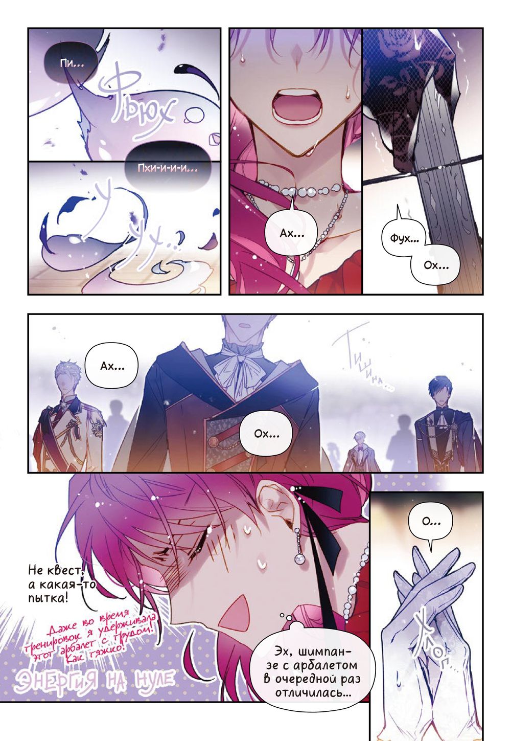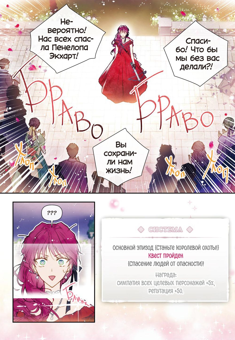 Четвертая часть популярной манхвы, где главная героиня перенеслась в онлайн-игру и стала Пенелопой Экхарт – главной злодейкой, которой все желают смерти. Пенелопа хочет сделать Иклису подарок, и во время ежегодных охотничьих состязаний отправляется в лес на поиски добычи. Однако каждая попытка поймать зверька заканчивается неудачей. И тут внезапно девушка сталкивается… с огромным медведем! В последний момент злодейке на помощь приходит кронпринц Каллисто. Но вскоре жизни героев снова оказываются под угрозой — на них нападает таинственный враг. Смогут ли герои спастись на этот раз?