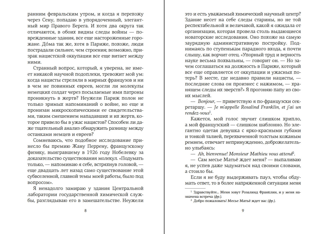 Англия. 1950-е годы. В тесных лабораториях Королевского колледжа разворачивается безжалостная гонка. На кону ни больше ни меньше — Нобелевская премия за открытие структуры ДНК. Блестящий биофизик Розалинд Франклин — первая, кто получает четкое изображение таинственной молекулы жизни. Она уверена, что победит, и играет по-честному. Но миру науки, в который она попадает после поспешного отъезда из Франции, чужда честность. Зато не чуждо тщеславие.