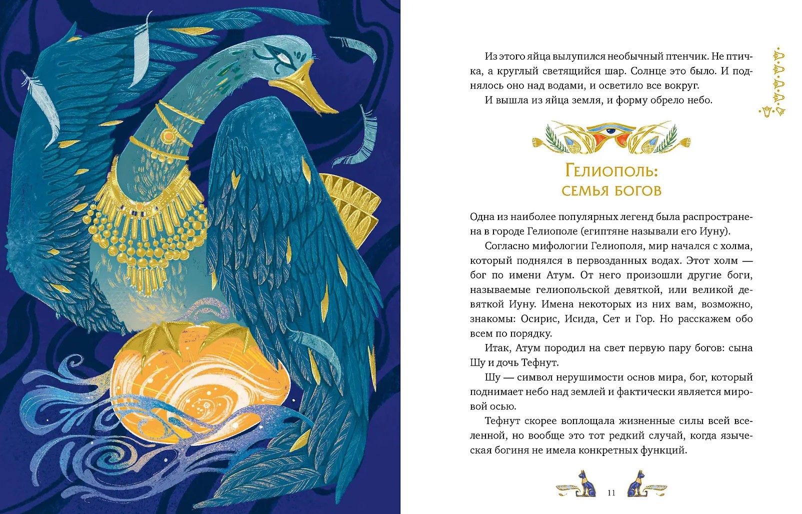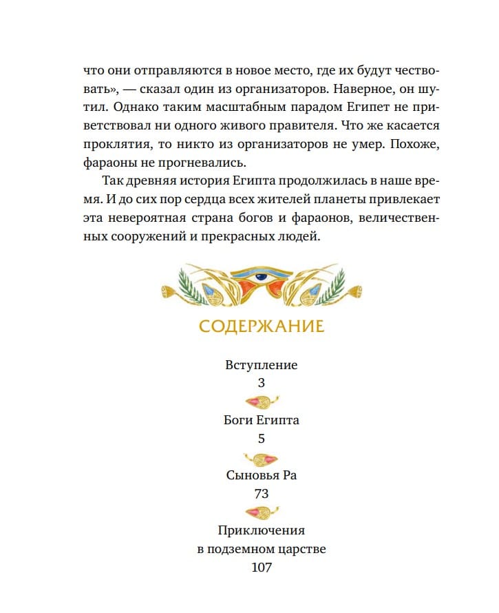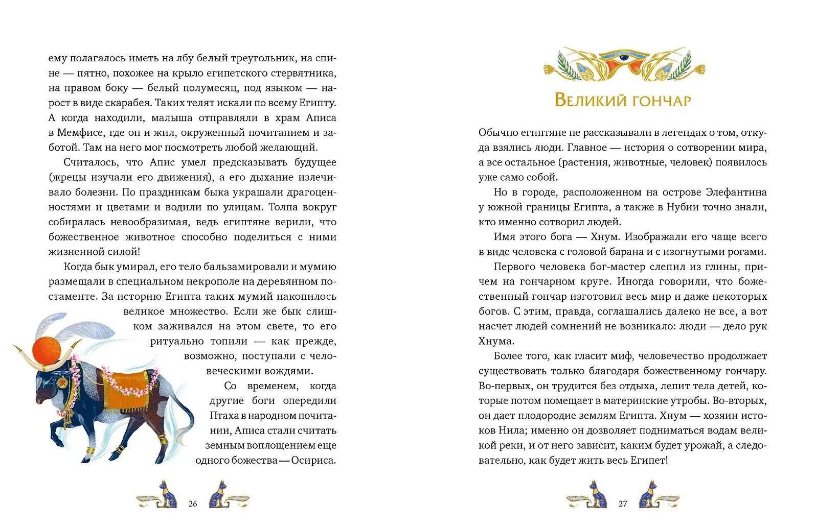 Красочные иллюстрации помогают представить богов, священных животных, храмы и сцены из мифов, делая рассказ наглядным и понятным.