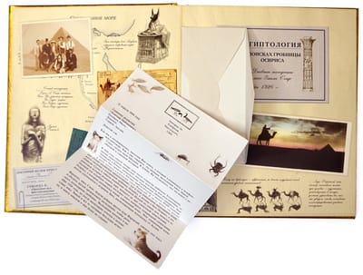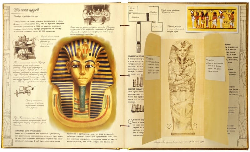 Книга, покорившая вершины хит-парадов в Америке и Европе. В рейтинге издания "New York Times" книга находилась на первом месте 24 недели подряд, опережая Дэна Брауна.  Все загадки Египта в одной книге!  В этой книге не только увлекательное содержание, но и дополнительные материалы в виде красочных карт, невероятных мини-книжек, образца пелены мумии, схемы пирамид, магическим глазом сфинкса, писем из Египта с открытками, фотографиями и даже багажным талоном. Обложка инкрустирована волшебными камнями. Книга также содержит древнюю египетскую игру с древними игровыми фишками и волшебным игровым полем.  Книга содержит настоящие образцы, дополнительные материалы и вложения на каждой странице. Издание станет настоящим сюрпризом для всех покупателей. Функциональность и прекрасное графическое оформление удивят каждого, кто откроет книгу.
