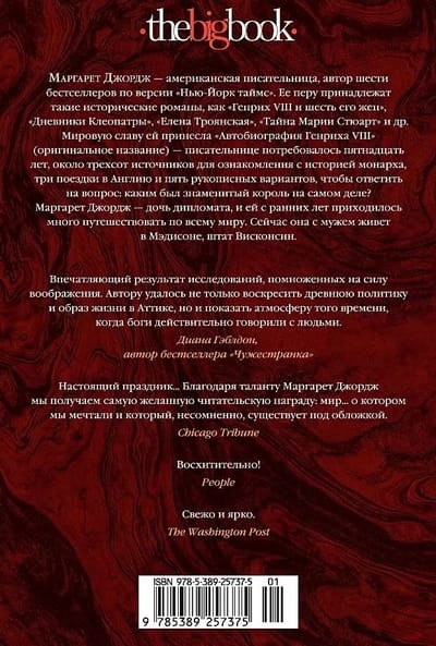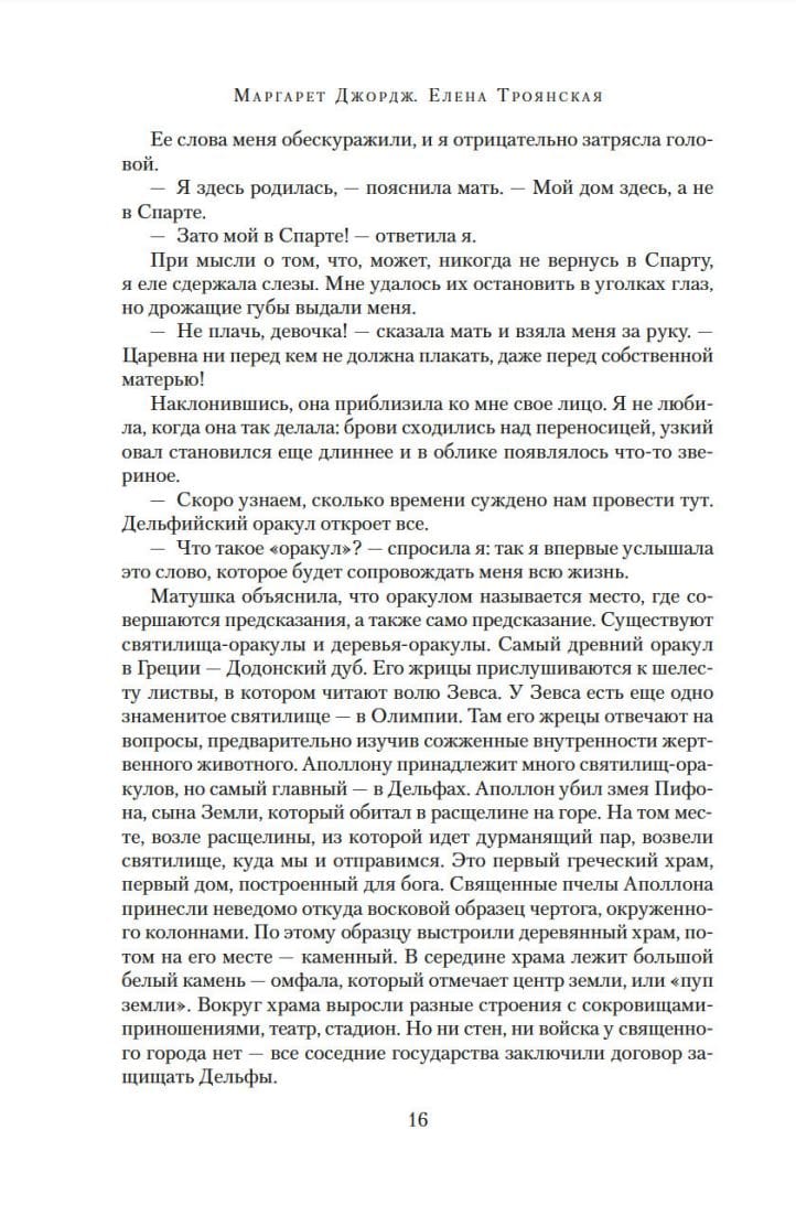 Воспетая Гомером красота этой женщины, «что в путь суда подвигла», не спасла мир и никому не принесла счастья. Ей было суждено сеять раздор и разрушать цивилизации. Но на протяжении многих веков она вдохновляла художников и писателей на создание прекрасных произведений искусства. К мифу о Елене Троянской обратилась и Маргарет Джордж, автор исторических романов-бестселлеров, подарив своей героине собственный голос. Дочь бога, жена царя, главный приз в самой кровопролитной войне древности, прекрасная Елена рассказывает свою историю — историю женщины, которая открыла свое божественное происхождение и сокрушительную силу своей красоты, смирилась было с пресной супружеской жизнью, но встретила великую любовь и расплатилась за это сполна...