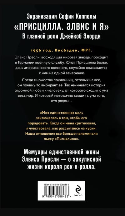 Впервые ее собственными словами Присцилла рассказывает историю их с Элвисом любви, раскрывая подробности их романа, противоречивого и сложного брака, развода и неразрывной связи, которая сохранилась даже после его трагической смерти. Посвященная и человеку, и легенде, книга «Элвис и я» предоставляет уникальный взгляд на настоящую жизнь короля рок-н-ролла и женщины, любившей его, несмотря ни на что.