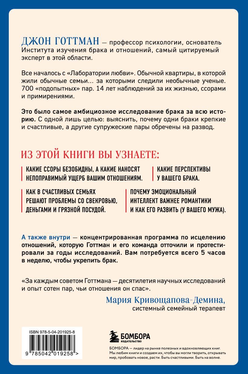 А также внутри — концентрированная программа по восстановлению отношений, которую Готтман и его команда отточили и протестировали за годы исследований.