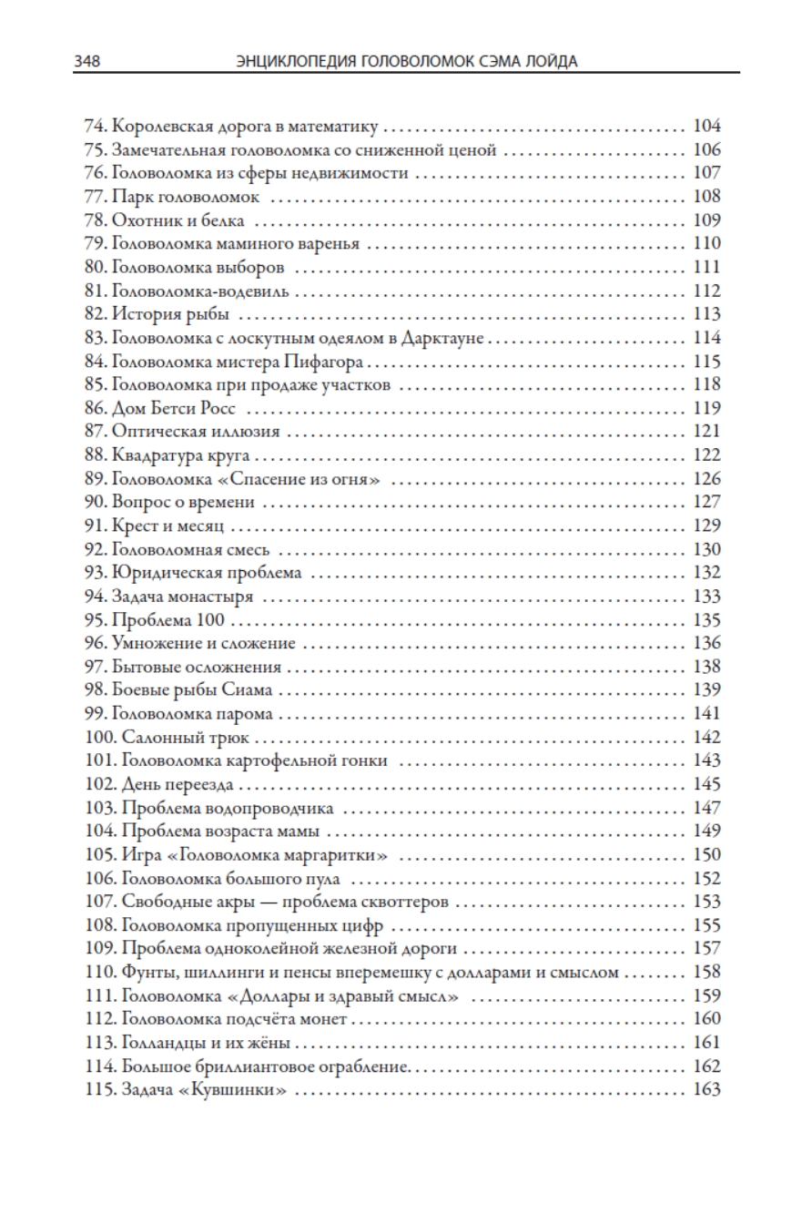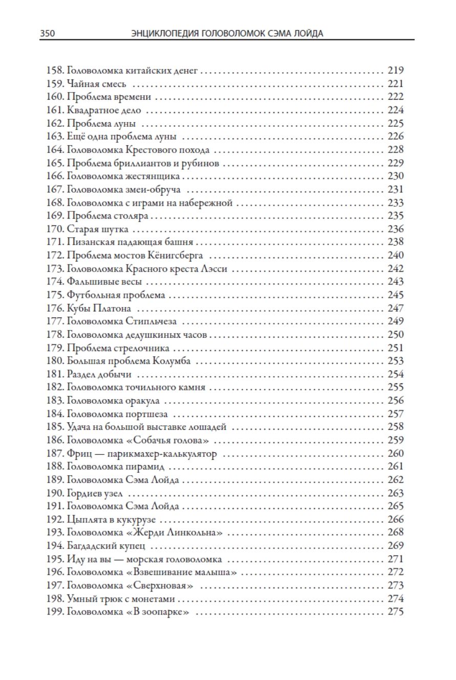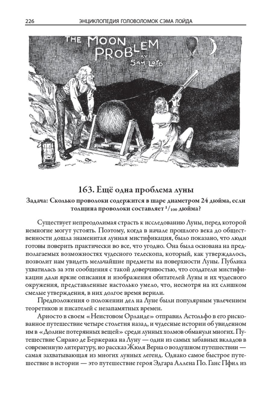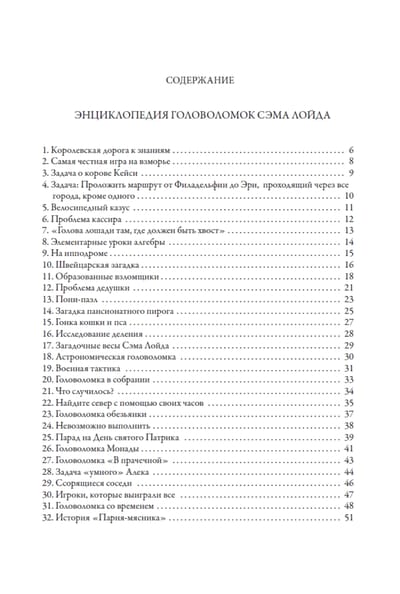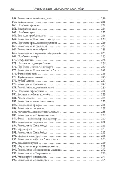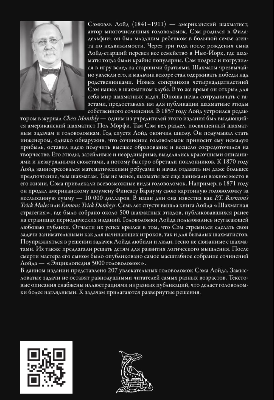 В данном издании представлено 207 увлекательных головоломок Сэма Лойда. Замысловатые задачи не оставят равнодушными читателей самых разных возрастов. Текстовые описания снабжены иллюстрациями из разных публикаций, что делает головоломки более наглядными. К задачам прилагаются развернутые решения.