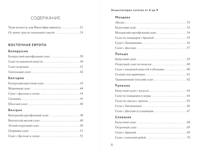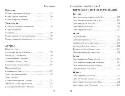 В нашей книги вы найдете поразительное количество салатов со всех концов света: из Европы, Азии и Африки, Америки и, разумеется, из России. С картошкой и капустой, которые любят во всех странах. С мясом, рыбой, морепродуктами, которые в каждой стране имеют свой вкус. С овощами и фруктами, которые теперь можно найти в любое время года в любом уголке мира. Особую прелесть составляют салаты, где сочетаются соленые и сладкие вкусы, свежие и обработанные продукты, простые и экзотические ароматы.