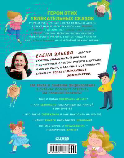 Герои этих увлекательных сказок откроют ребёнку, как и когда появились деньги, а также научат распоряжаться ими бережно и грамотно. узнайте, как бизнес-план, реклама и кредит помогли Весёлому Клоуну основать кондитерскую фабрику. В конце каждой сказки ждут игры и задания на закрепление важных знаний!
