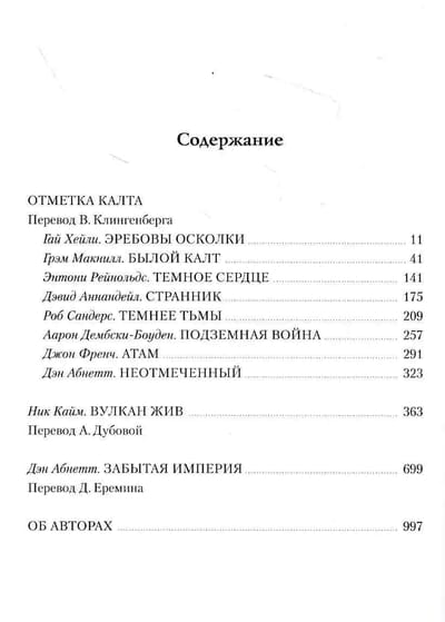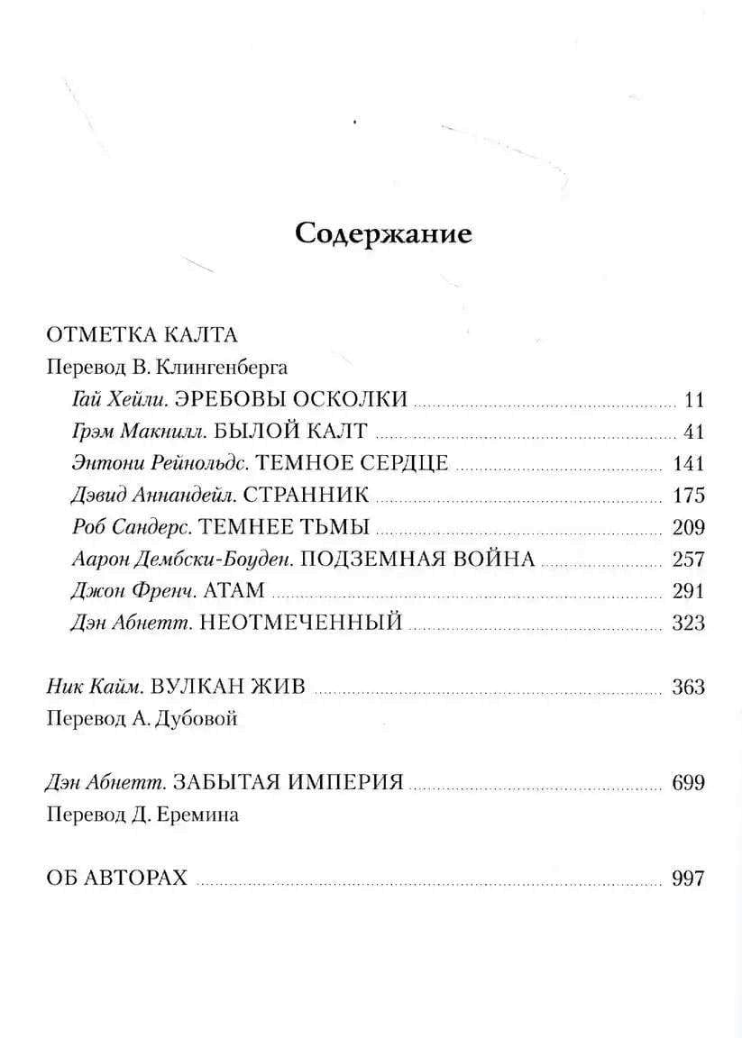 Отметка Калта Ересь пришла на Калт без предупреждения. Всего за несколько часов Несущие Слово уничтожили своих бывших братьев — гордых воинов Ультрамаринов. Теперь, когда мир выжжен вспышками изувеченной звезды Веридии, выжившие должны дать бой XVII легиону и их бесчестным союзникам или встретить свое проклятие в мрачных убежищах аркологий под поверхностью планеты. Вулкан жив Выжившие в исстванской резне воины из легиона Саламандр долго и безуспешно пытаются отыскать своего поверженного примарха. Они не знают, что Вулкан, к своему несчастью, еще жив… и томится в плену, где служит игрушкой жестокому тюремщику, собственному брату Конраду Курцу. Под жуткими пытками, призванными сломить и тело, и дух, Вулкан увидит глубину нравственного падения Ночного Призрака — и раскроет тайну, которая способна изменить ход всей войны. Забытая империя Далеко на Восточной Окраине расположены миры Ультрамара. Пережив нападение Несущих Слово на Калт и последовавший за ним Теневой крестовый поход против Пятисот Миров, примарх Ультрамаринов Робаут Гиллиман теперь собирает соратников на Макрагге — как он предполагает, новой будущей цитадели человечества. Жители Ультрамара изолированы от Терры страшным варп-штормом. Вся остальная Галактика охвачена огнем войны. С прибытием множества беженцев различия между друзьями и врагами начинают стираться. Сможет ли теперь Гиллиман посоперничать в могуществе с отступником Хорусом?