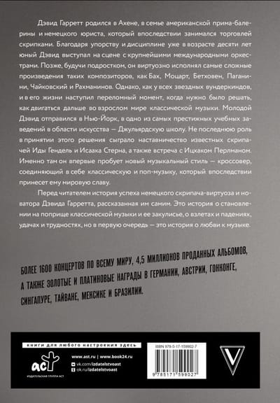 Перед читателем история успеха немецкого скрипача-виртуоза и новатора Дэвида Гарретта, рассказанная им самим. Это история о становлении на поприще классической музыки и ее закулисье, о взлетах и падениях, удачах и трудностях, но в первую очередь — это история о любви к музыке.