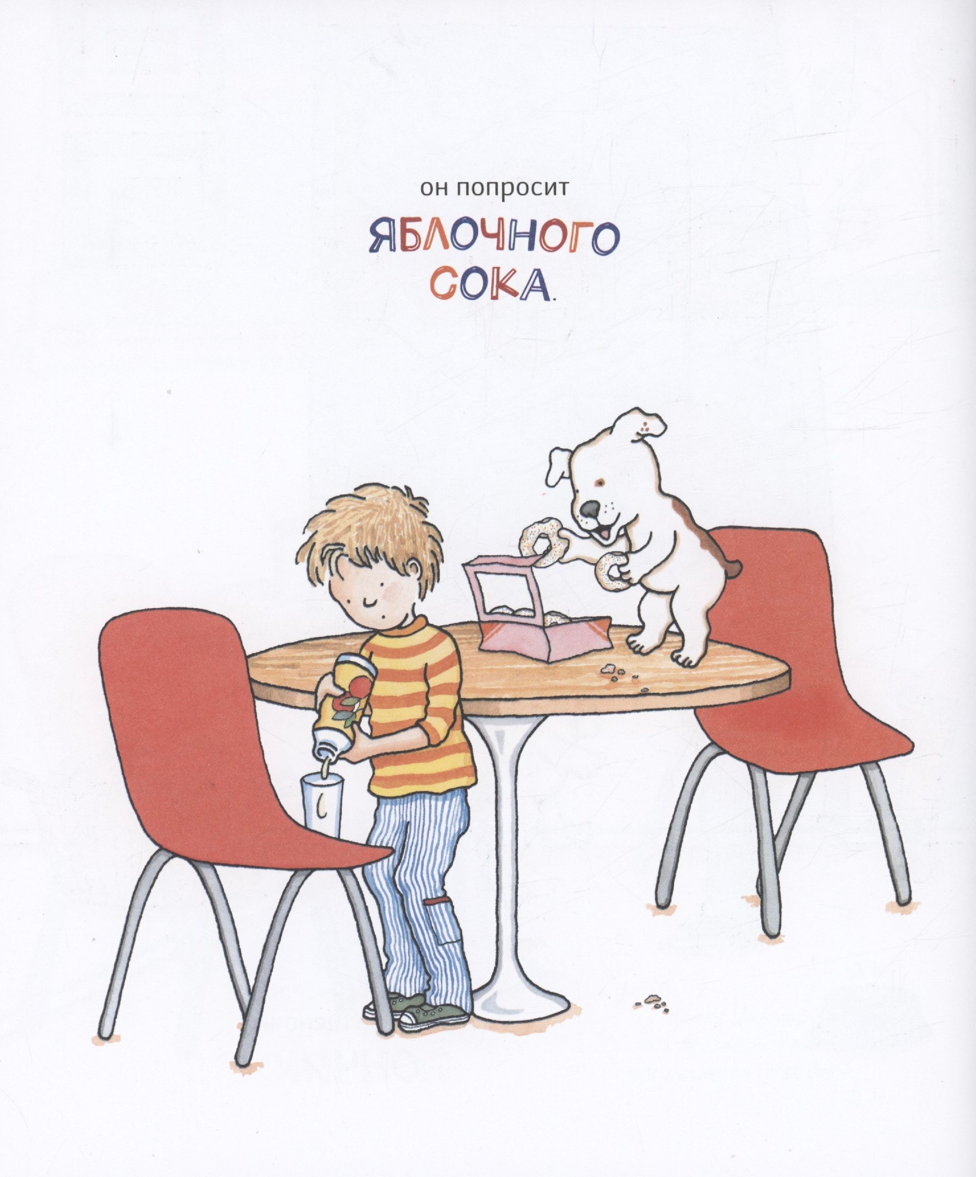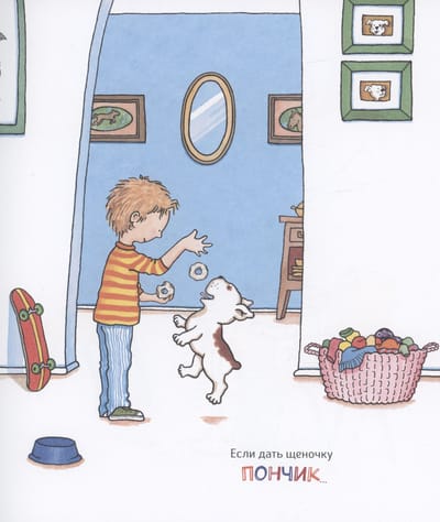 Если угостить щеночка пончиком, он наверняка попросит яблочного сока. И выпьет залпом целый стакан! А когда сок закончится, щенок захочет приготовить его самостоятельно. Он побежит в сад, залезет на дерево и кинет тебе пару яблок. Потом он подумает о своем любимом бейсболе и предложит сыграть… А что (скорее всего) будет дальше, вы узнаете из этой веселой и доброй книжки!