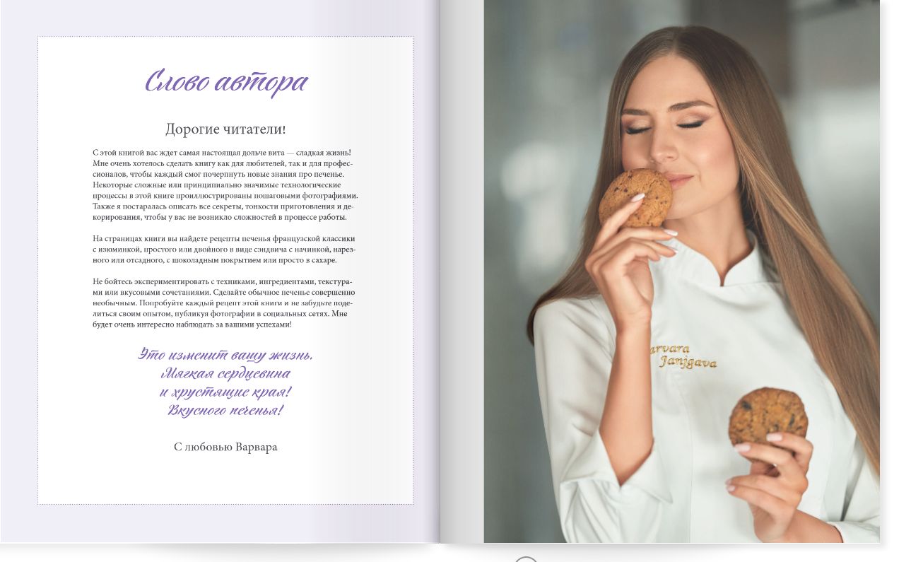 Ничто не вызывает столько положительных эмоций, как печенье! Только представьте себе, что ароматы нежной ванили, экзотической корицы, звонкого цитруса соединяются в единую симфонию с воздушным бисквитом или хрупким песочным основанием. Попробуйте вообразить, как кофе вальсирует с шоколадом, как яркий бергамот заводит дружбу с абрикосовым джемом, как соединяются в жгучем союзе шоколад и чили, как орех пекан и карамель составляют то самое вкусовое сочетание, которое дарит минуты гедонистического наслаждения. Авторские рецепты Варвары Джанджгава позволят вам воплотить самые смелые вкусовые фантазии и создать ваш собственный шедевр.