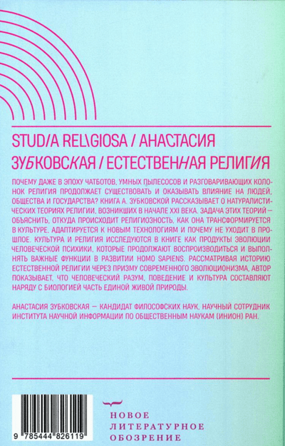 Почему даже в эпоху чатботов, умных пылесосов и разговаривающих колонок религия продолжает существовать и оказывать влияние на людей, общества и государства? Книга А. Зубковской рассказывает о натуралистических теориях религии, возникших в начале XXI века. Задача этих теорий — объяснить, откуда происходит религиозность, как она трансформируется в культуре, адаптируется к новым технологиям и почему не уходит в прошлое. Культура и религия исследуются в книге как продукты эволюции человеческой психики, которые продолжают воспроизводиться и выполнять важные функции в развитии homo sapiens. Рассматривая историю естественной религии через призму современного эволюционизма, автор показывает, что человеческий разум, поведение и культура составляют наряду с биологией часть единой живой природы.