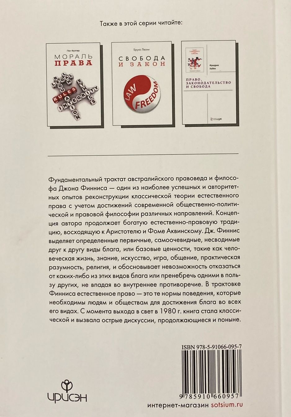 Фундаментальный трактат австралийского правоведа и философа Джона Финниса — один из наиболее успешных и авторитетных опытов реконструкции классической теории естественного права с учетом достижений современной общественно-политической и правовой философии различных направлений.