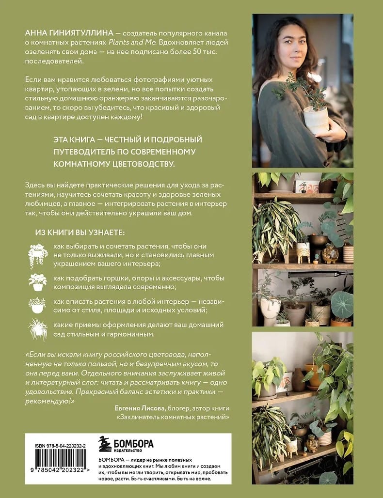 Эта книга — ваш честный и подробный путеводитель по современному комнатному цветоводству. Здесь вы найдете практические решения для ухода за растениями, научитесь сочетать красоту и здоровье зеленых любимцев, узнаете, как грамотно организовать освещение, подобрать грунт, выбрать идеальные горшки и кашпо, а главное — интегрировать растения в интерьер так, чтобы они действительно украшали ваш дом.