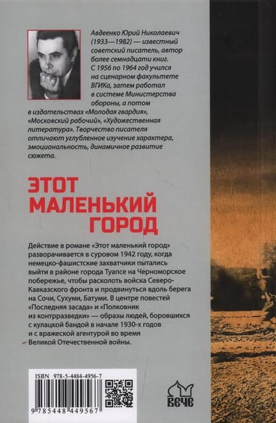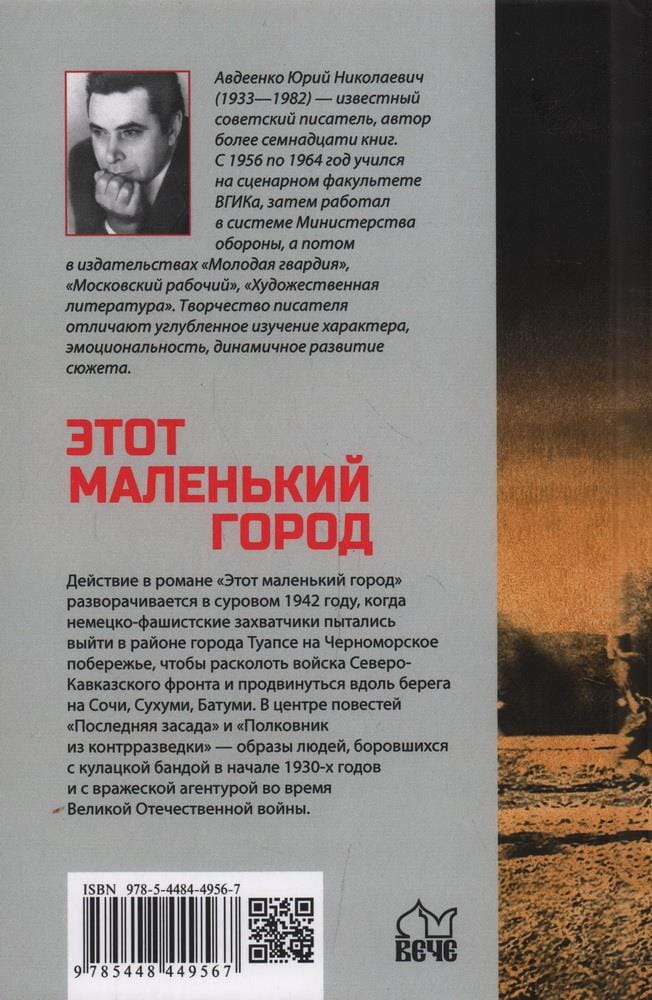 В книгу известного советского писателя Юрия Николаевича Авдеенко (1933—1982) вошли его роман и две повести на военную тему. Действие в романе «Этот маленький город» разворачивается в суровом 1942 году, когда немецко-фашистские захватчики пытались выйти в районе города Туапсе на Черноморское побережье, чтобы расколоть войска Северо-Кавказского фронта и продвинуться вдоль берега на Сочи, Сухуми, Батуми. В центре повестей «Последняя засада» и «Полковник из контрразведки» — образы людей, боровшихся с кулацкой бандой в начале 1930-х годов и с вражеской агентурой во время Великой Отечественной войны.