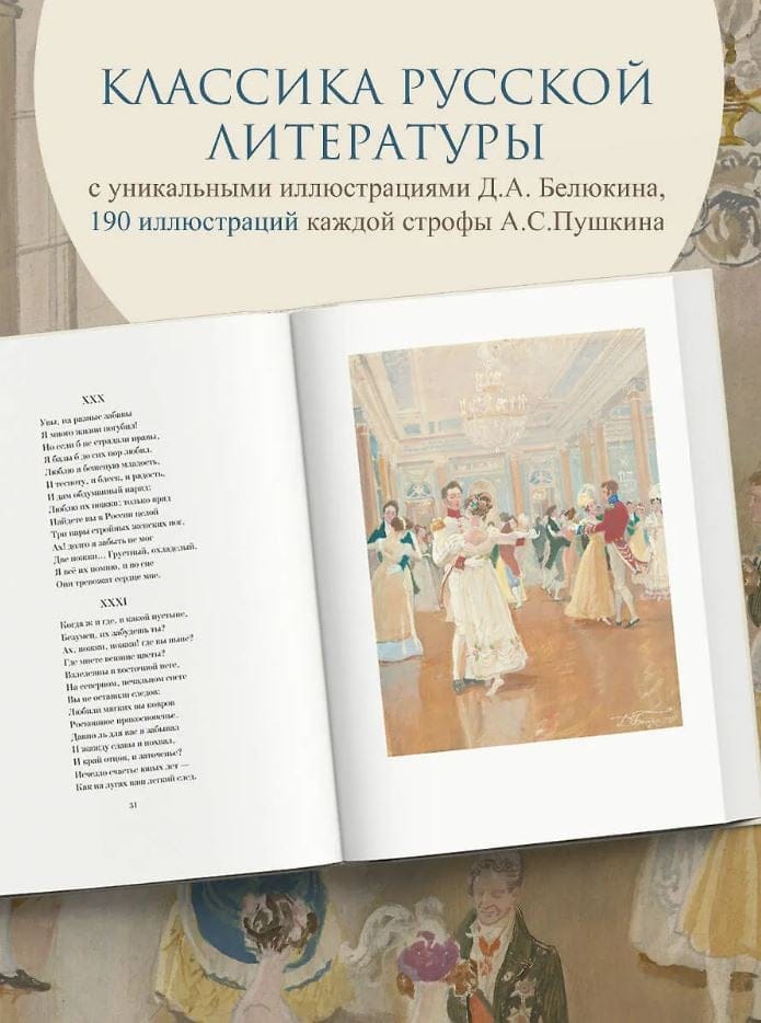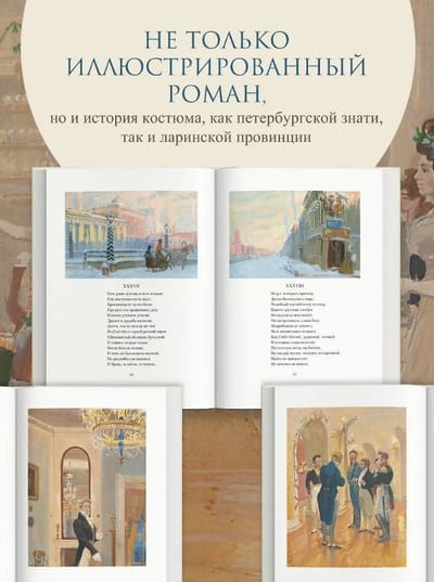 Дмитрий Анатольевич Белюкин, народный художник России, академик, описал своей палитрой красок каждую страницу романа. Это не только иллюстрированный роман, но и история костюма, как петербургской знати, так и ларинской провинции.