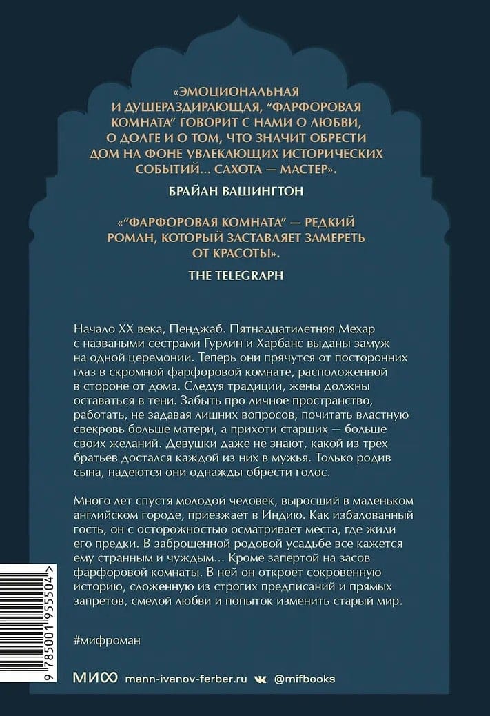 Много лет спустя молодой человек, выросший в маленьком английском городе, приезжает в Индию. Как избалованный гость, он с осторожностью осматривает места, где жили его предки. В заброшенной родовой усадьбе все кажется ему странным и чуждым... Кроме запертой на засов фарфоровой комнаты. В ней он откроет сокровенную историю, сложенную из строгих предписаний и прямых запретов, смелой любви и попыток изменить старый мир.