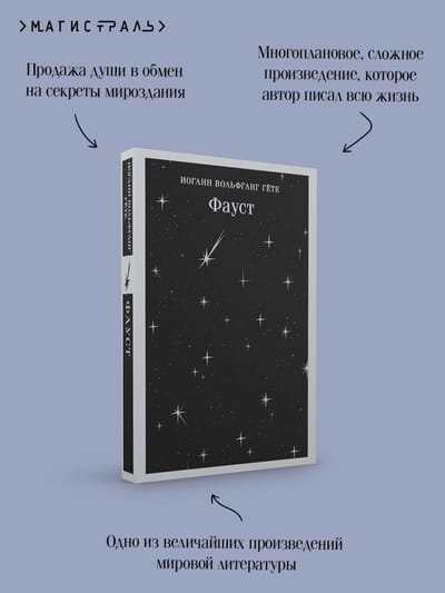 Легенда об ученом Иоганне Фаустусе, продавшем Мефистофелю душу в обмен на его обещание открыть секреты мироздания, показать бездны ада и рая, обогатить новым знанием, давно волновала людское воображение. Так доктор Фауст, которому щедро приписывались всевозможные чудеса, стал героем немецкого народа. Великий чернокнижник был персонажем театральных представлений, к его образу обращались многие авторы, но именно под пером Гёте эта история стала одной из подлинных вершин мировой литературы. «Фауст» Гёте задает загадки, и уже не одно поколение читателей пытается их разгадать.