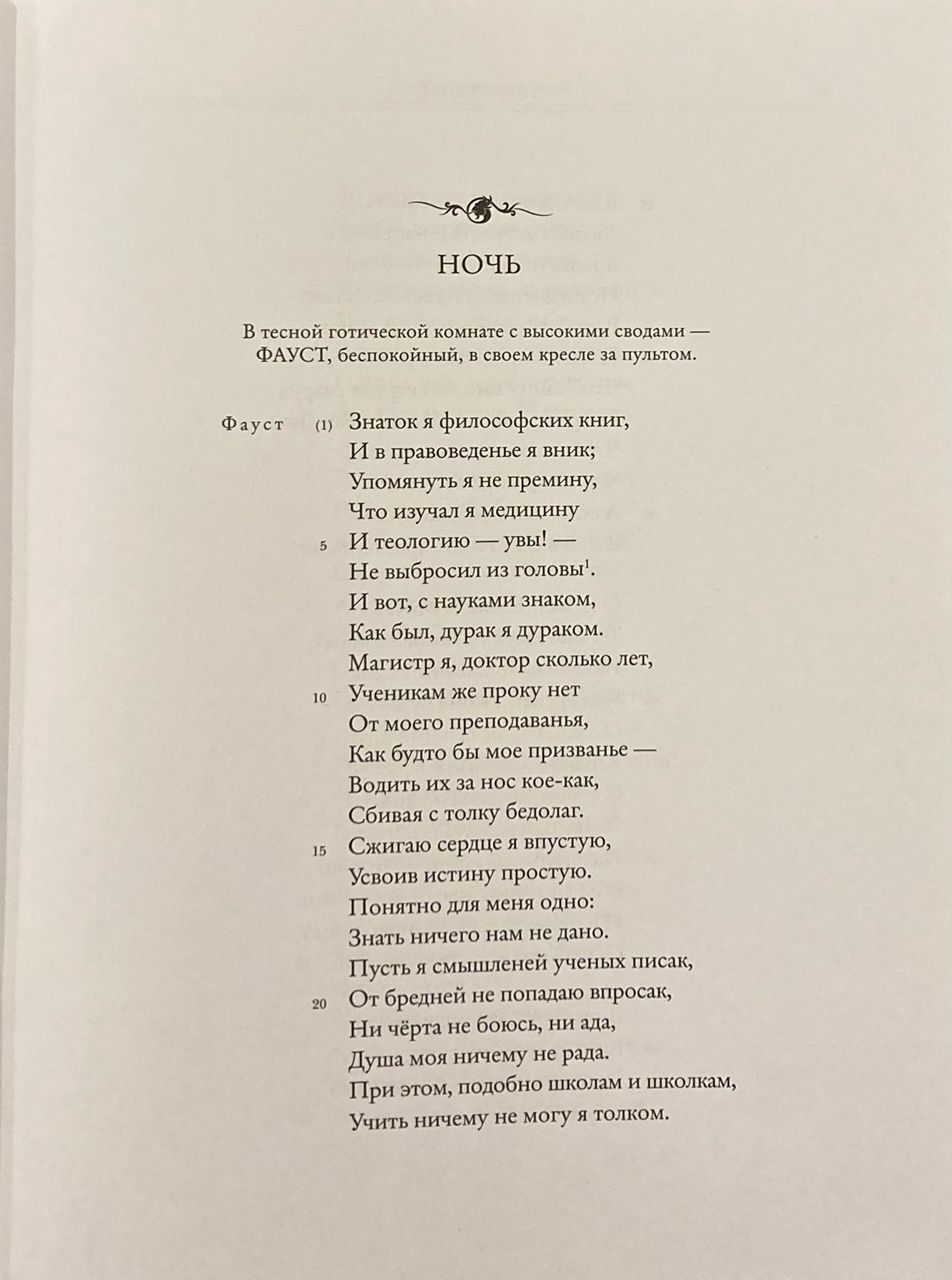 «Фауст» — это не только главное произведение гениального немецкого поэта, мыслителя, мистика, духовидца Иоганна Вольфганга фон Гёте (1749–1832), отдавшего сложению данной трагедии шестьдесят лет жизни; это, без всякого сомнения, вершинное произведение как в немецкой поэзии, так и во всей мировой литературе, «величайшее создание поэтического духа» (А. С. Пушкин), книга, которая и доныне является одним из краеугольных камней немецкой и европейской культуры. Центральный герой поэмы стоит в одном ряду с такими знаковыми персонажами Нового времени, как Гамлет, Дон Жуан и Дон Кихот. Не случайно Освальд Шпенглер провозгласил «фаустовскую культуру» — тысячелетний путь германской нации, и недаром идеи, составившие мировоззренческий фундамент «Фауста», считаются высшим воплощением «немецкого духа».