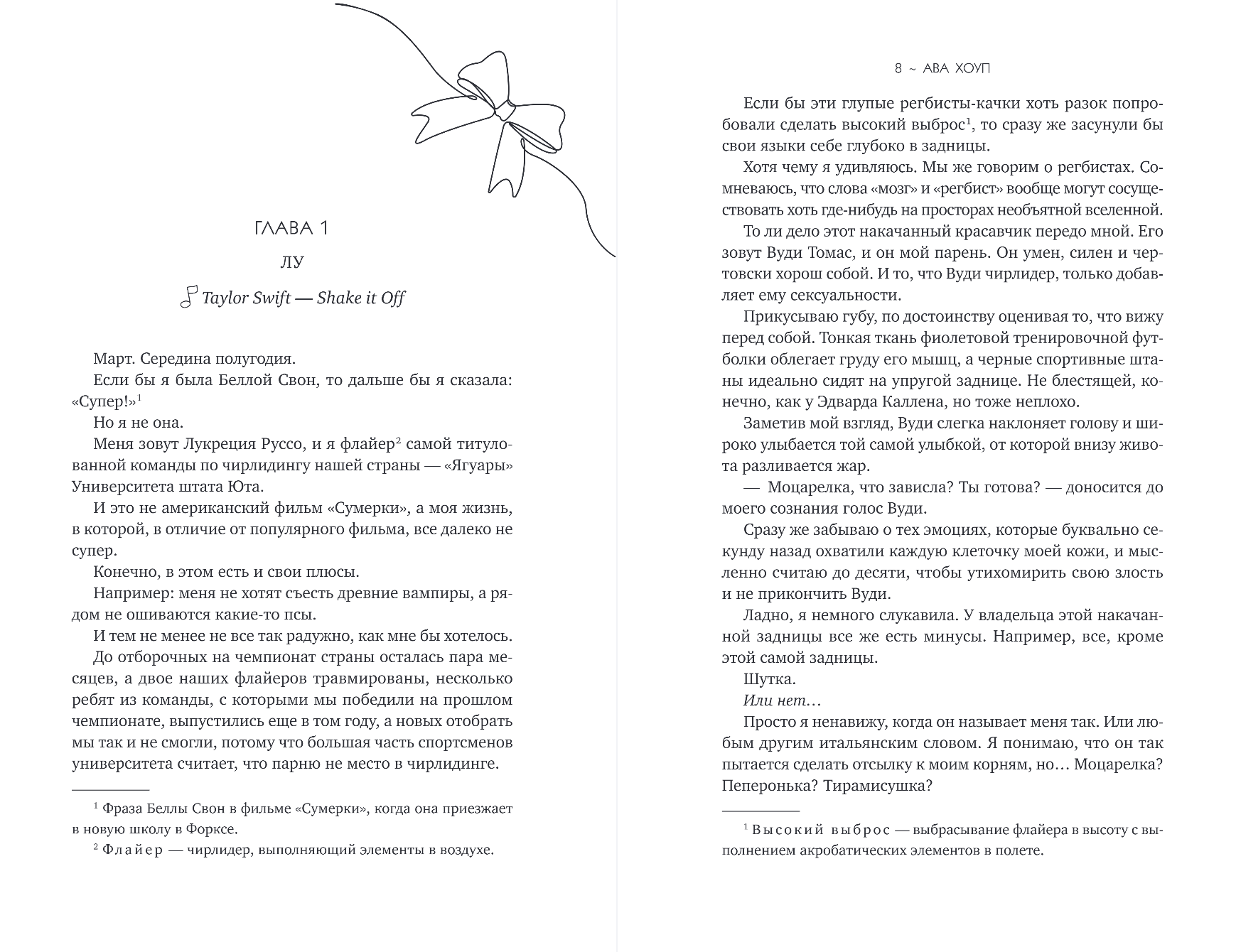 Лу. Итан Мур — ворчун и брюзга. Он молчалив, угрюм и вечно чем-то недоволен. Это не касалось меня ровно до тех пор, пока от него не стало зависеть мое будущее. Теперь он — моя база, а я — его флаер, и впереди нас ждет чемпионат штата по чирлидингу. Ради победы мы должны зарыть топор войны. Вот только что, если мне так понравится наше противостояние, что я не захочу, чтобы оно заканчивалось?