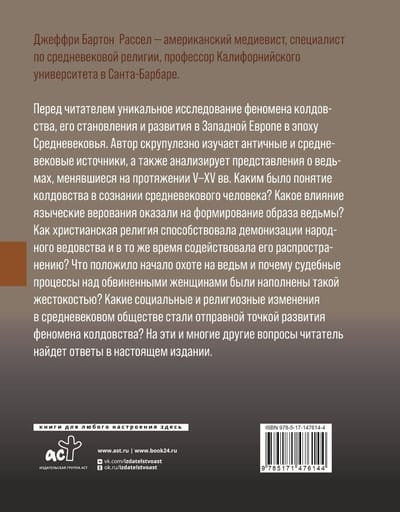 Перед читателем уникальное исследование феномена колдовства, его становления и развития в Западной Европе в эпоху Средневековья. Автор скрупулезно изучает античные и средневековые источники, а также анализирует представления о ведьмах, менявшиеся на протяжении V-XV вв. Каким было понятие колдовства в сознании средневекового человека? Какое влияние языческие верования оказали на формирование образа ведьмы? Как христианская религия способствовала демонизации народного ведовства и в то же время содействовала его распространению? Что положило начало охоте на ведьм и почему судебные процессы над обвиненными женщинами были наполнены такой жестокостью? Какие социальные и религиозные изменения в средневековом обществе стали отправной точкой развития феномена колдовства? На эти и многие другие вопросы читатель найдет ответы в настоящем издании.