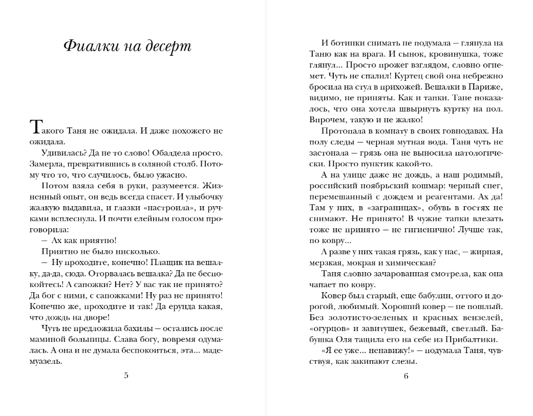 В своем новом сборнике «Фиалки на десерт» автор предлагает читателю задуматься о порой сложных взаимоотношениях между мамой и взрослым сыном. В какой момент она должна его отпустить и как сделать так, чтобы это было легко и безболезненно для обоих? Когда ей нужно понять и принять, что и у него, а главное, и у нее есть своя личная жизнь? И как не задушить в крепких материнских объятиях самое дорогое, что есть у женщины?