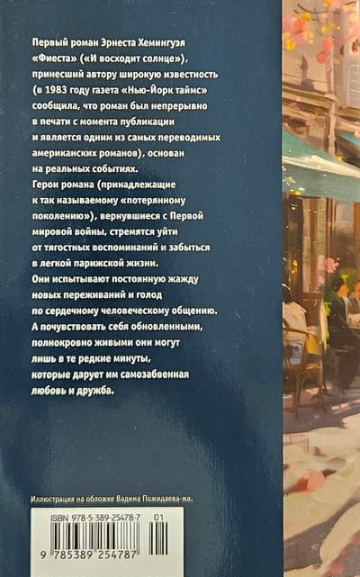 Первый роман Эрнеста Хемингуэя «Фиеста» («И восходит солнце»), принесший автору широкую известность (в 1983 году газета «Нью-Йорк таймс» сообщила, что роман был непрерывно в печати с момента публикации и является одним из самых переводимых американских романов), основан на реальных событиях. Герои романа (принадлежащие к так называемому «потерянному поколению»), вернувшиеся с Первой мировой войны, стремятся уйти от тягостных воспоминаний и забыться в легкой парижской жизни. Они испытывают постоянную жажду новых переживаний и голод по сердечному человеческому общению. А почувствовать себя обновленными, полнокровно живыми они могут лишь в те редкие минуты, которые дарует им самозабвенная любовь и дружба.