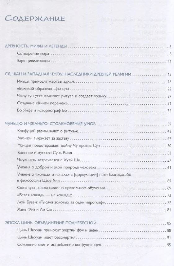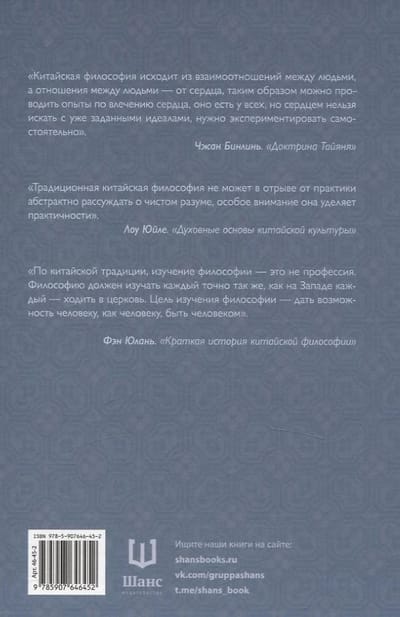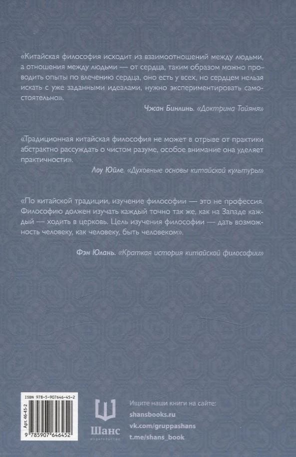 В книге дан сжатый очерк истории китайской философии, начиная с ее истоков в древнейшей мифологии и культуре племен, населявших доимперский Китай за три тысячи лет до нашей эры, и заканчивая началом XX века — эпохой демократических перемен, открытой Синьхайской революцией 1911 г. Описаны основные течения, школы и персоналии в истории китайской мысли.