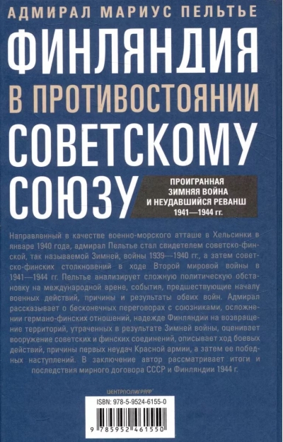 Направленный в качестве военно-морского атташе в Хельсинки в январе 1940 года, адмирал Пельтье стал свидетелем советско-финской, так называемой Зимней, войны 1939—1940 гг., а затем советско-финских столкновений в ходе Второй мировой войны в 1941—1944 гг. Пельтье анализирует сложную политическую обстановку на международной арене, события, предшествующие началу военных действий, причины и результаты обеих войн. Адмирал рассказывает о бесконечных переговорах с союзниками, осложнении германо-финских отношений, надежде Финляндии на возвращение территорий, утраченных в результате Зимней войны, оценивает вооружение советских и финских соединений, описывает ход боевых действий, причины первых неудач Красной армии, а затем ее победных наступлений. В заключение автор рассматривает итоги и последствия мирного договора СССР и Финляндии 1944 г. В книге представлены карты и сравнительные таблицы вооружения противоборствующих сторон.