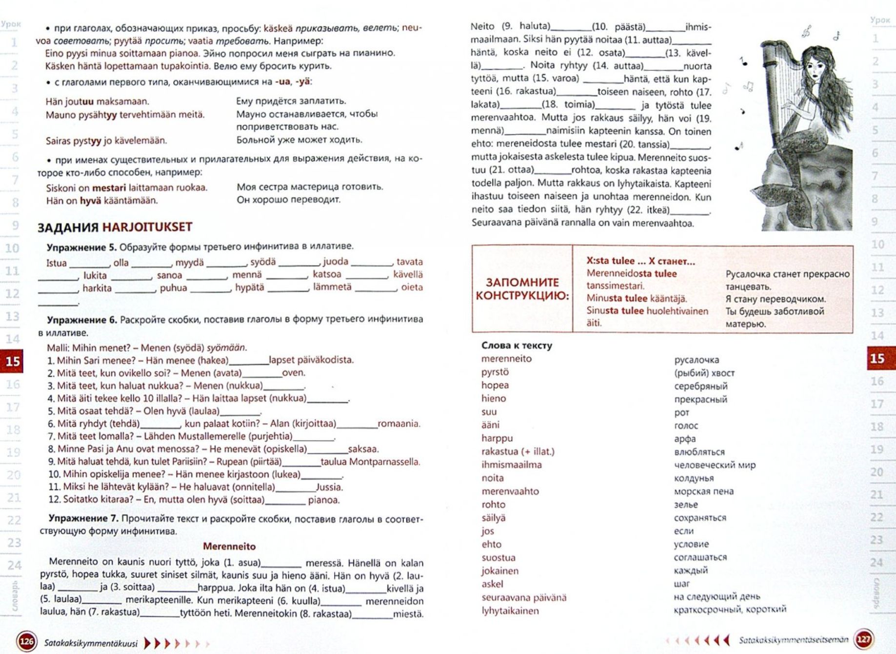 В каждом уроке самоучителя вы найдете описание лексико-грамматических категорий всех частей речи, упражнения на закрепление изученного материала, тексты регионоведческого содержания и тестовые задания. Для проверки выполненных упражнений в конце каждой главы даются ответы к заданиям. Самоучитель дополнен словарем, которым можно воспользоваться при выполнении практических заданий и чтении текстов. Тексты самоучителя расскажут вам о неповторимой природе и самобытной культуре Финляндии.