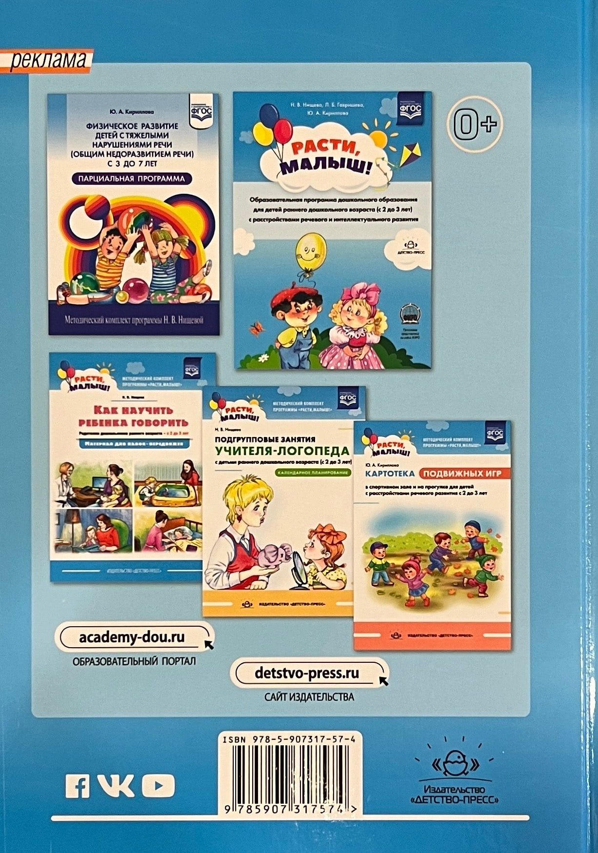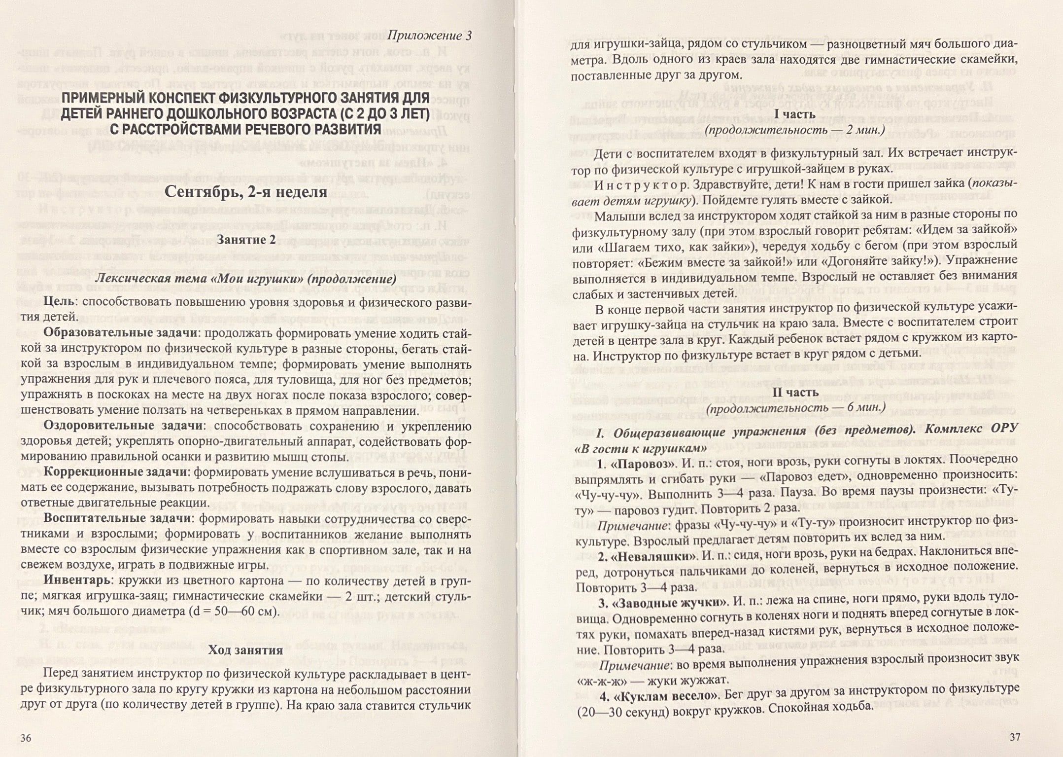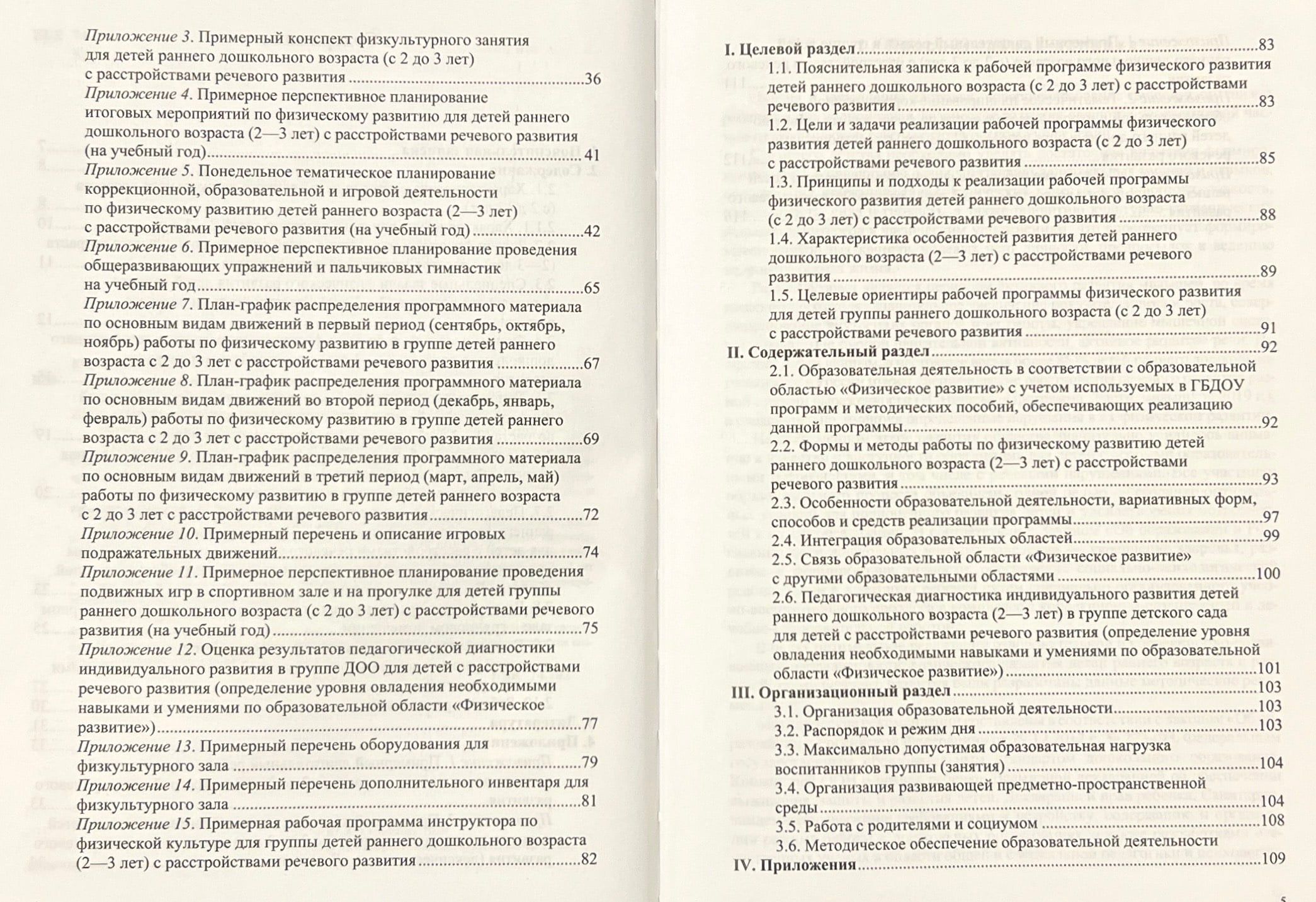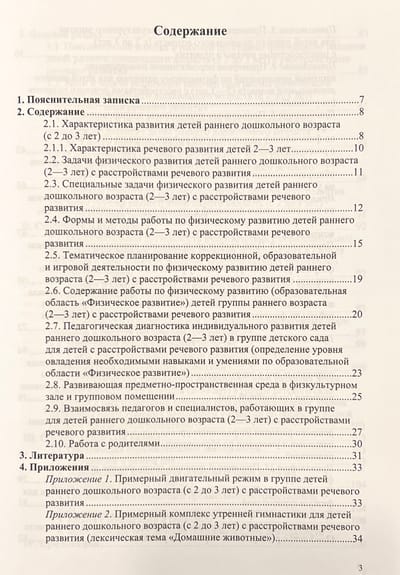 Издание содержит характеристику детей раннего дошкольного возраста, описание задач, форм и методов, содержания работы. Представлены понедельное тематическое планирование коррекционной, образовательной и игровой деятельности по образовательной области «Физическое развитие», оценка результатов педагогической диагностики индивидуального развития ребенка 2—3 лет в группе ДОО, рекомендуемый перечень подвижных игр, описана развивающая предметно-пространственная среда, игровое оборудование.