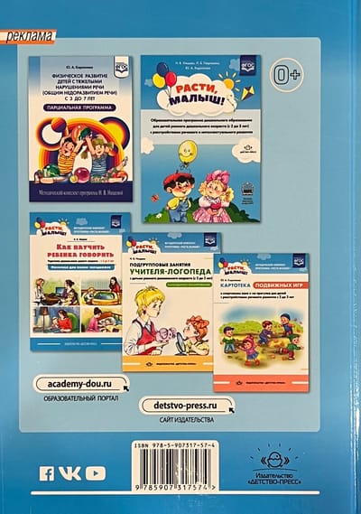 В книге представлены методические рекомендации по физическому развитию детей 2—3 лет с расстройствами речевого развития, цель которых — оказание методической помощи педагогам-практикам в вопросах улучшения состояния здоровья малышей, их физического развития, расширения функциональных возможностей организма, формирования двигательных умений, навыков и физических качеств, содействие развитию речи.